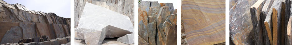 mnoho velmi tenkých vrstev kamenů z masivních bloků břidlice až do 5 tun.